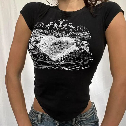 Y2K Grunge Heart Aesthetic Print Baby Tee