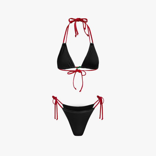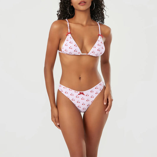 Soft Girl Contrast Ribbon Bikini Swimsuit