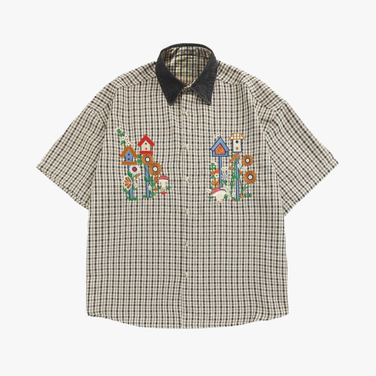 Retro Patchwork Denim Collar Shirt