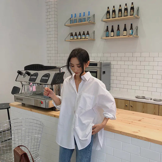 White Loose Oversized BF Blouse