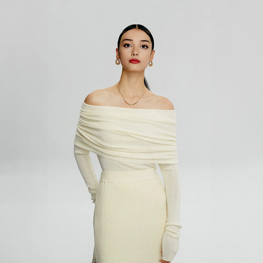 Off-Shoulder Slim Ribbed Sweater