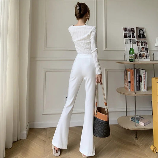 Striped Wide-Leg Ribbon Tie-Up Pants